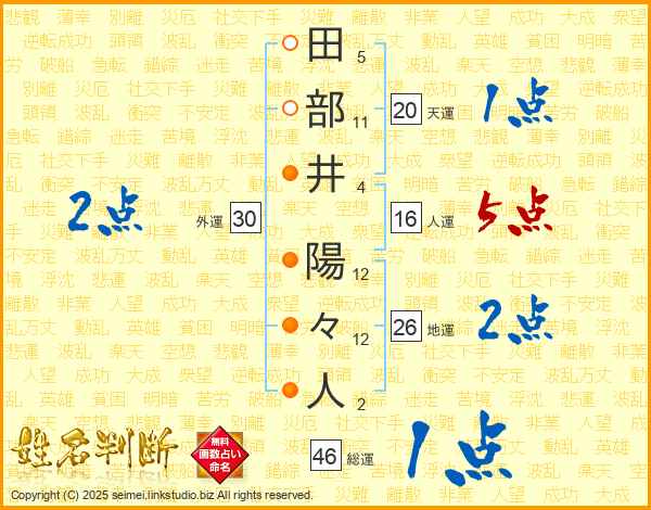 田部井陽々人さんの総運は46画の1点!