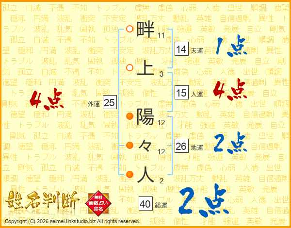 畔上陽々人さんの地運は26画の2点!
