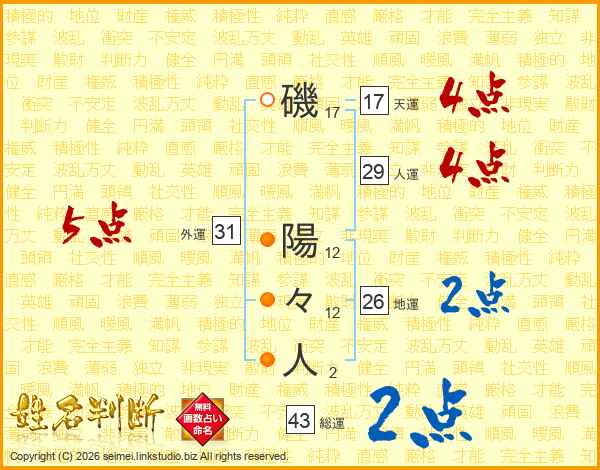 磯陽々人さんの外運は31画の5点!