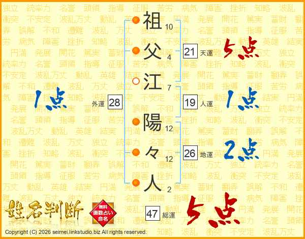 祖父江陽々人さんの総運は47画の5点!