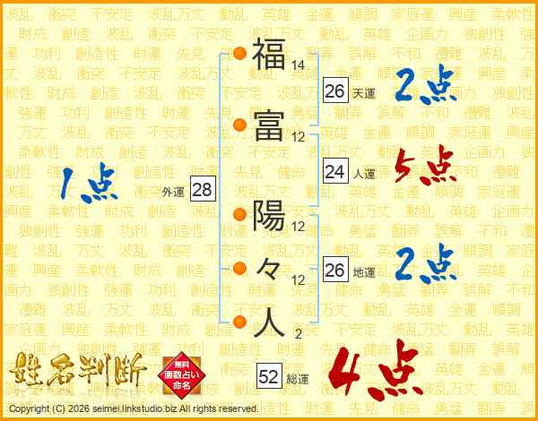 福富陽々人さんの総運は52画の4点!