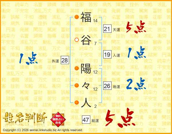 福(14画)谷(7画) 陽(12画)々(12画)人(2画)