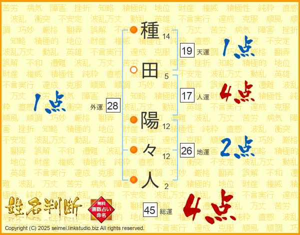 種(14画)田(5画) 陽(12画)々(12画)人(2画)