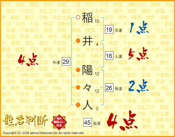 稲井陽々人さんの総運は45画の4点!