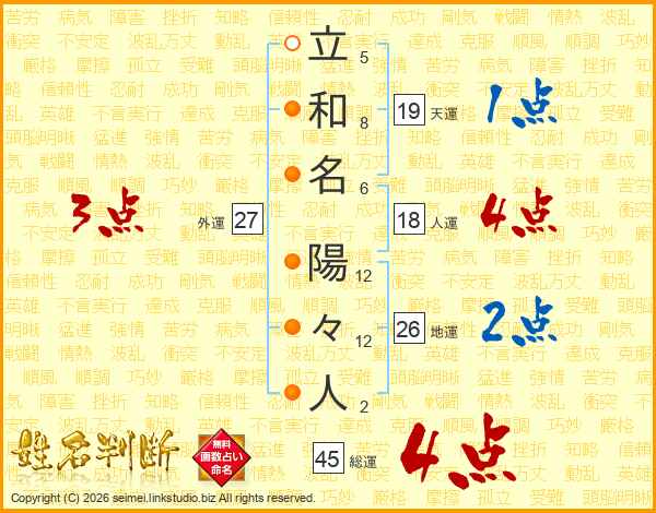 立和名陽々人さんの総運は45画の4点!