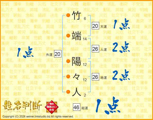 竹端陽々人さんの総運は46画の1点!