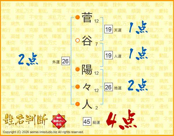 菅谷陽々人さんの総運は45画の4点!