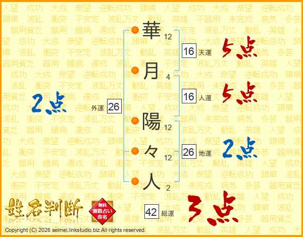 華月陽々人さんの総運は42画の3点!