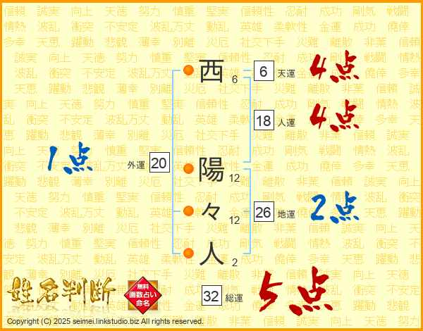 西陽々人さんの総運は32画の5点!