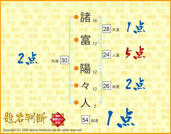 諸富陽々人さんの総運は54画の1点!