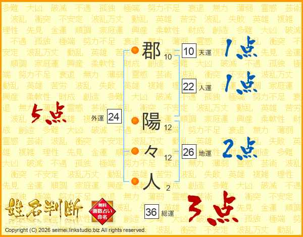 郡陽々人さんの総運は36画の3点!