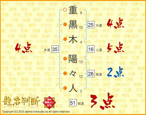 重黒木陽々人さんの総運は51画の3点!
