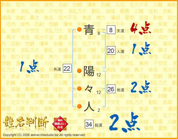 青陽々人さんの総運は34画の2点!
