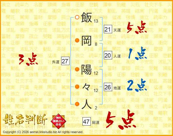飯岡陽々人さんの総運は47画の5点!