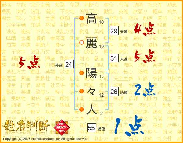 高麗陽々人さんの総運は55画の1点!