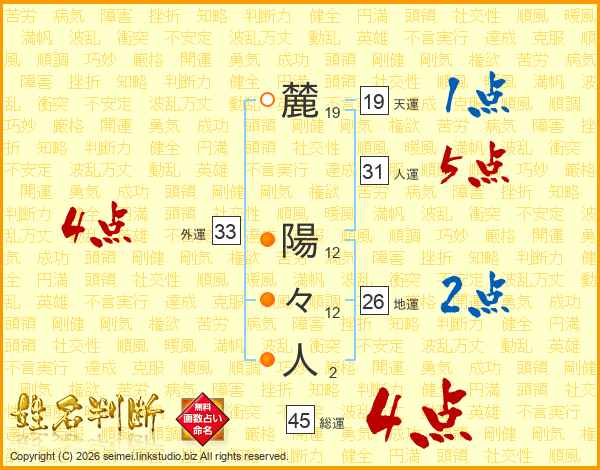 麓陽々人さんの総運は45画の4点!