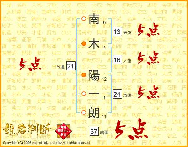 南木陽一朗さんの天運は13画の5点!