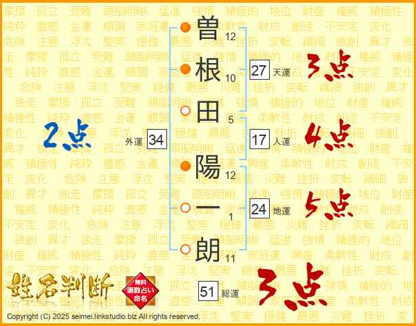 曽根田陽一朗さんの天運は27画の3点!