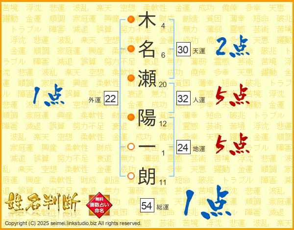 木名瀬陽一朗さんの天運は30画の2点!