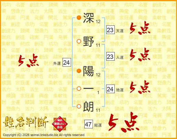 深野陽一朗さんの総運は47画の5点!