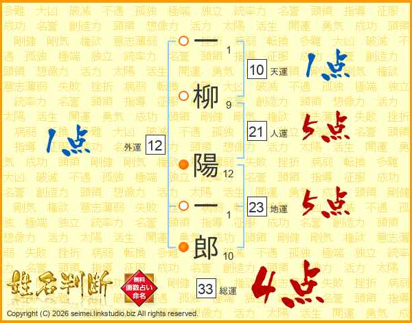 一(1画)柳(9画) 陽(12画)一(1画)郎(10画)