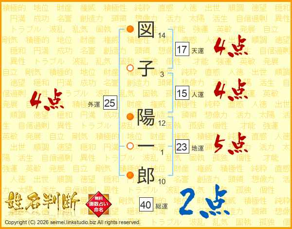 図(14画)子(3画) 陽(12画)一(1画)郎(10画)
