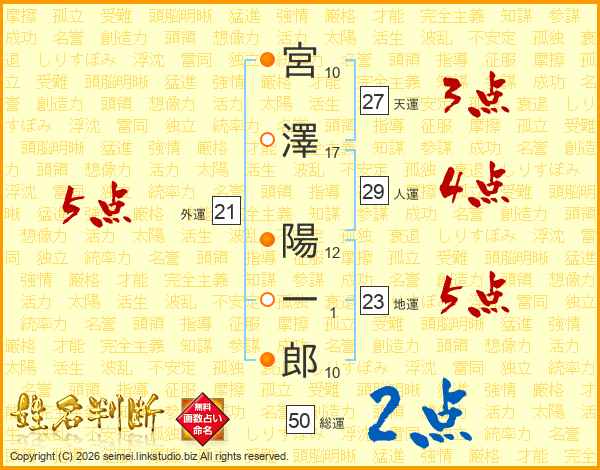 宮澤陽一郎さんの天運は27画の3点!
