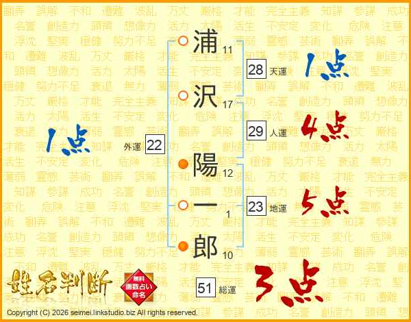 浦沢陽一郎さんの総運は51画の3点!