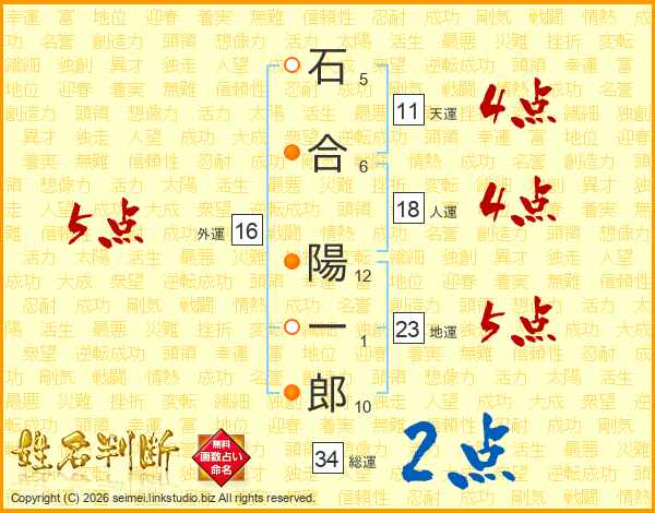 石合陽一郎さんの天運は11画の4点!