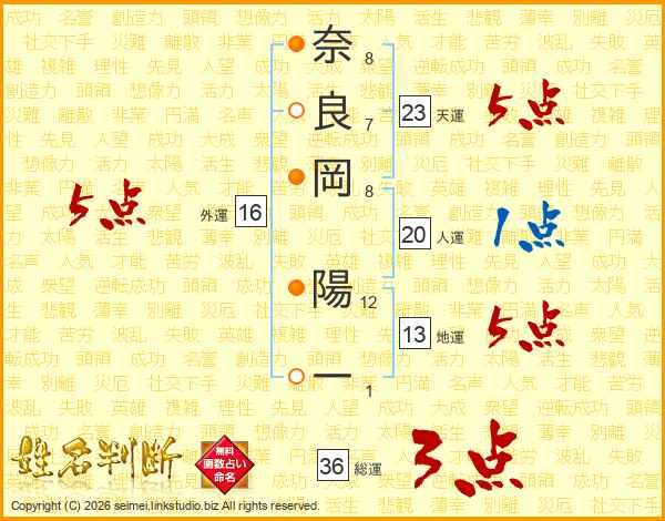 奈良岡陽一さんの総運は36画の3点!