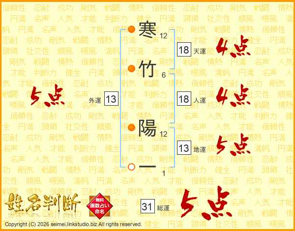 寒竹陽一さんの総運は31画の5点!