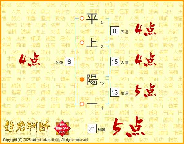 平上陽一さんの総運は21画の5点!