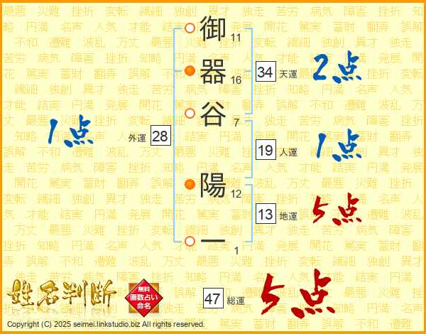 御器谷陽一さんの総運は47画の5点!