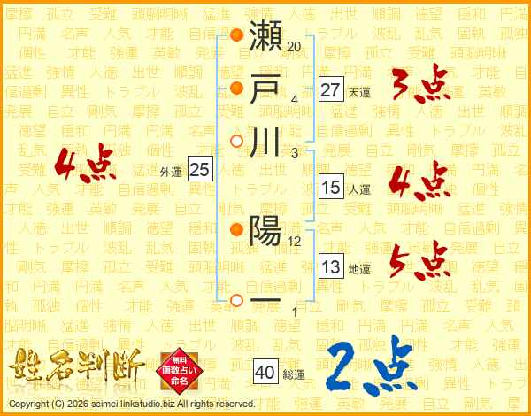 瀬戸川陽一さんの総運は40画の2点!