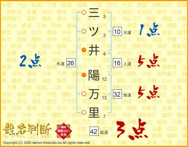 三ツ井陽万里さんの人運は16画の5点!