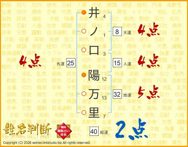 井ノ口陽万里さんの地運は32画の5点!