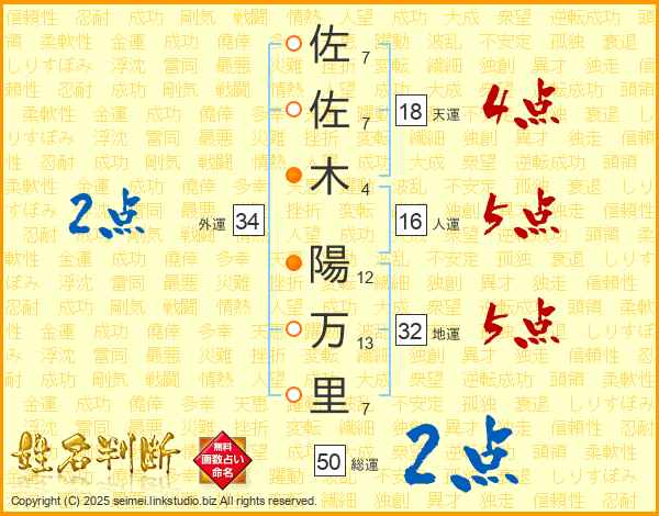 佐(7画)佐(7画)木(4画) 陽(12画)万(13画)里(7画)