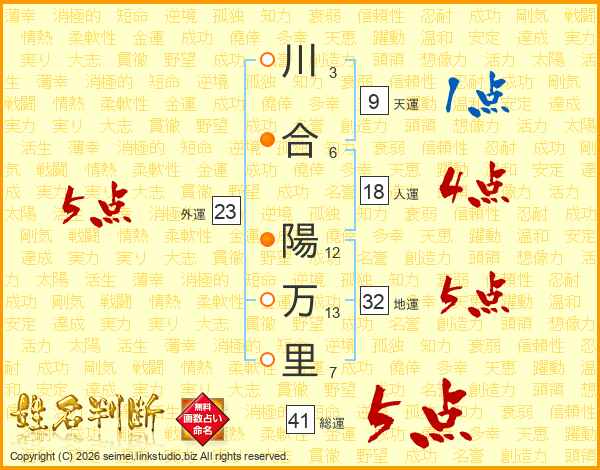 川合陽万里さんの総運は41画の5点!