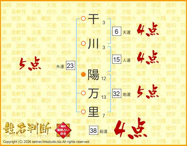 干川陽万里さんの総運は38画の4点!