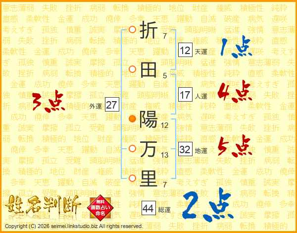 折田陽万里さんの総運は44画の2点!