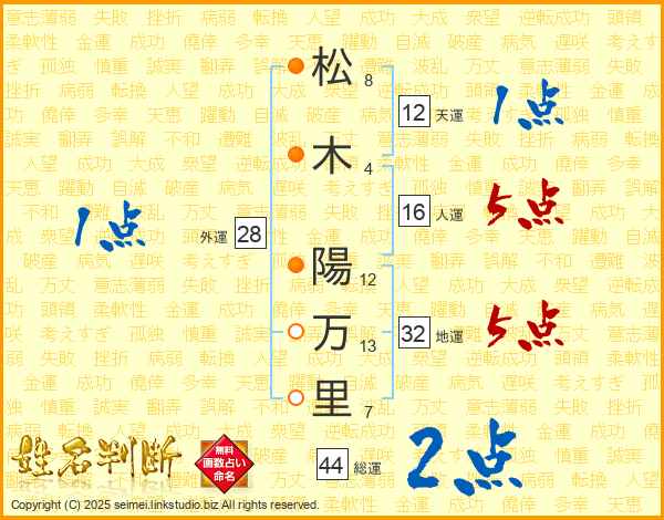 松(8画)木(4画) 陽(12画)万(13画)里(7画)
