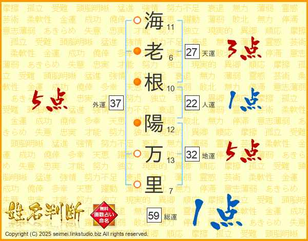 海老根陽万里さんの総運は59画の1点!
