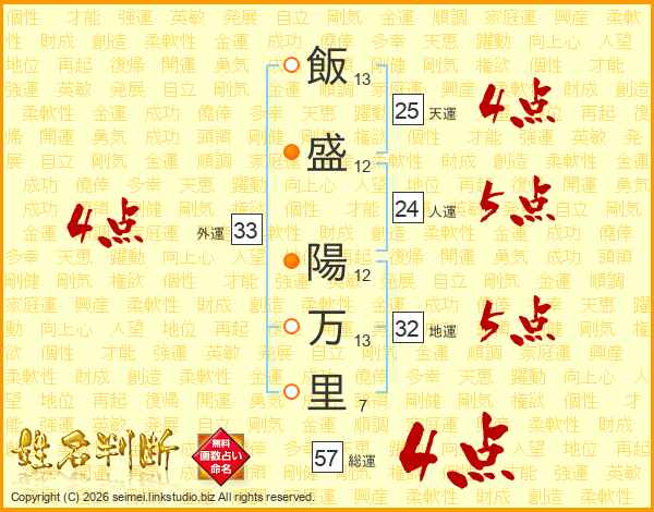 飯盛陽万里さんの総運は57画の4点!