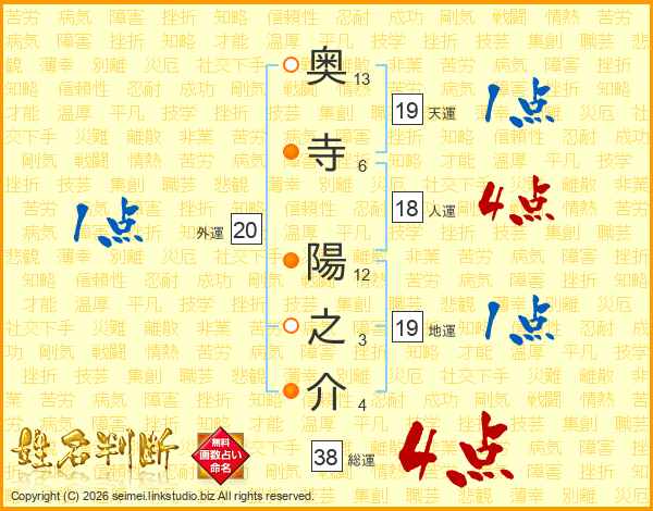 奥(13画)寺(6画) 陽(12画)之(3画)介(4画)