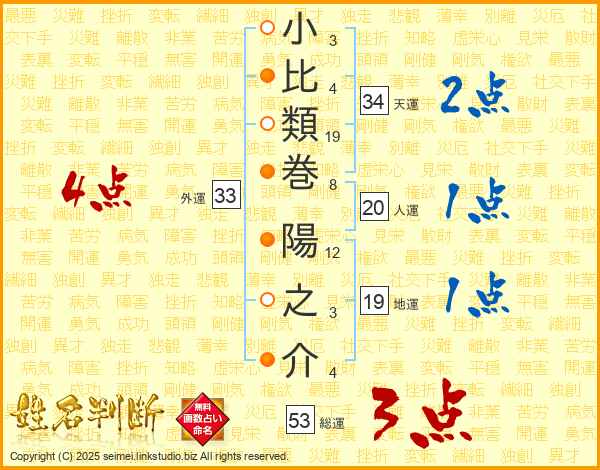 小(3画)比(4画)類(19画)巻(8画) 陽(12画)之(3画)介(4画)