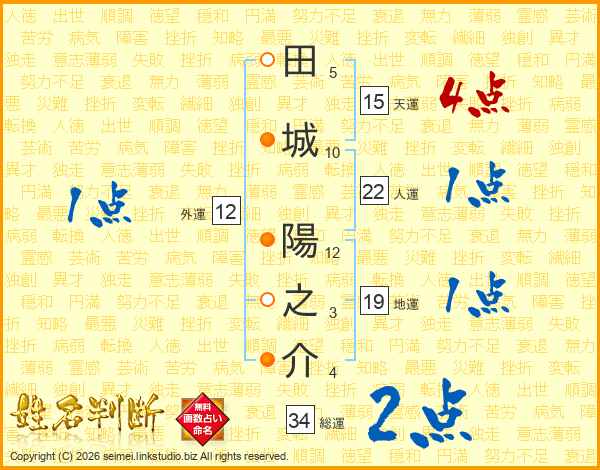 田(5画)城(10画) 陽(12画)之(3画)介(4画)