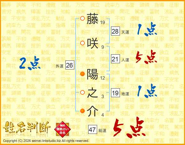 藤咲陽之介さんの総運は47画の5点!