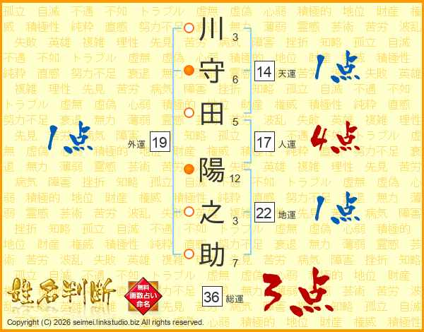 川守田陽之助さんの総運は36画の3点!