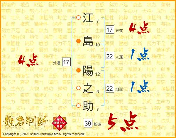 江島陽之助さんの総運は39画の5点!