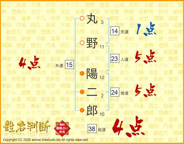 丸野陽二郎さんの総運は38画の4点!